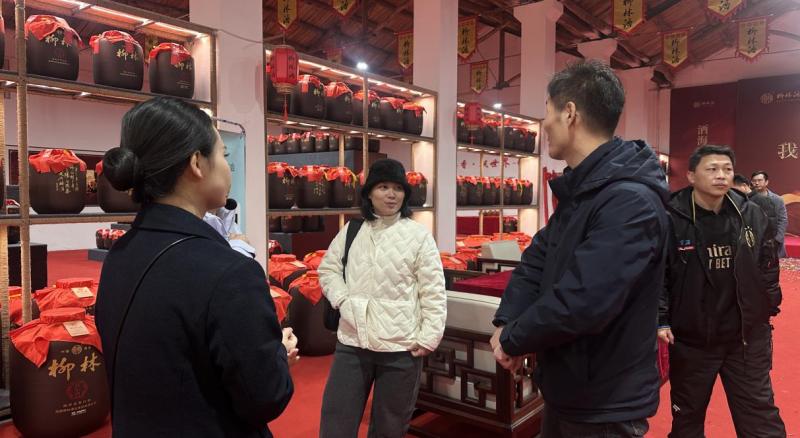 随后代表团抵达西安国际商会常务理事单位宝鸡柳林酒厂,开启深度调研。在酒厂专业团队的引导下,代表们深入生产车间、酒窖、文化展厅等核心区域,近距离观摩白酒酿造的传统工艺与现代化生产流程,详细了解柳林酒的历史传承、酿造技艺与品牌理念,深刻感受其精益求精的品质追求与深厚的文化积淀。