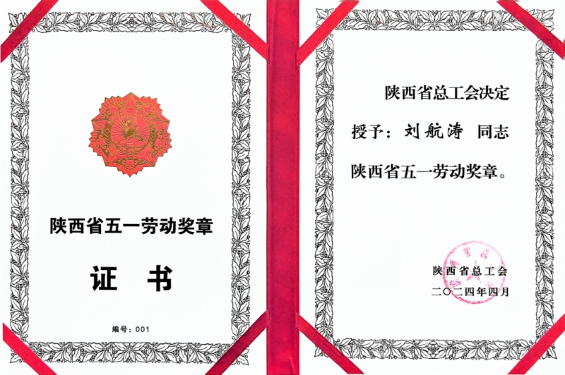 五一国际劳动节前夕,陕西省总工会授予30个先进集体集体为“西安市五一劳动奖状”,授予120名先进个人为“陕西省五一劳动奖章”,命名100个先进班组为“陕西省工人先锋号”荣誉称号。其中,西部超导技术工人刘航涛荣获年度陕西省“五一劳动奖章”荣誉称号。