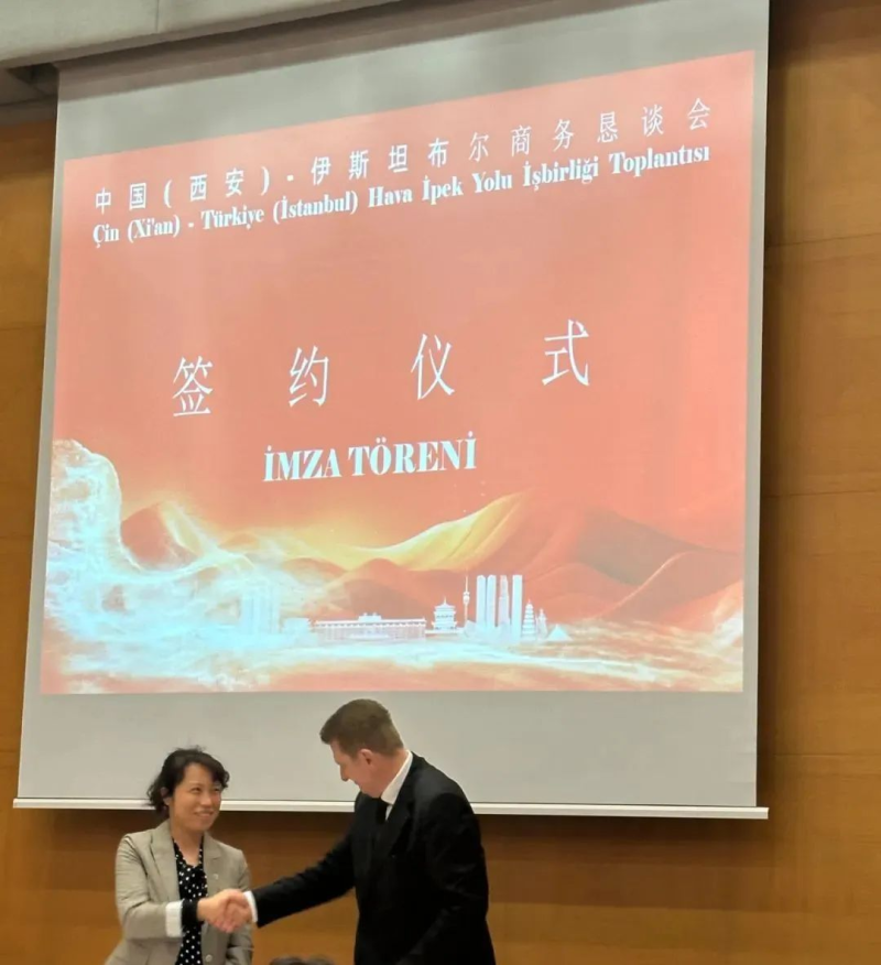 土耳其时间5月20日下午,在土耳其伊斯坦布尔当地的中国(西安)·伊斯坦布尔商务恳谈会上,西安湄南生物科技股份有限公司(以下简称“湄南高科”)与Galaxy International Group Ic Ve Dis Dic.Ltd.Sti.(以下简称Galaxy International)正式签署了总金额高达1亿元人民币的沙漠治理及防水工程的项目订单。双方的合作迈出了坚实的一步,为两国的经济发展带来新的活力。