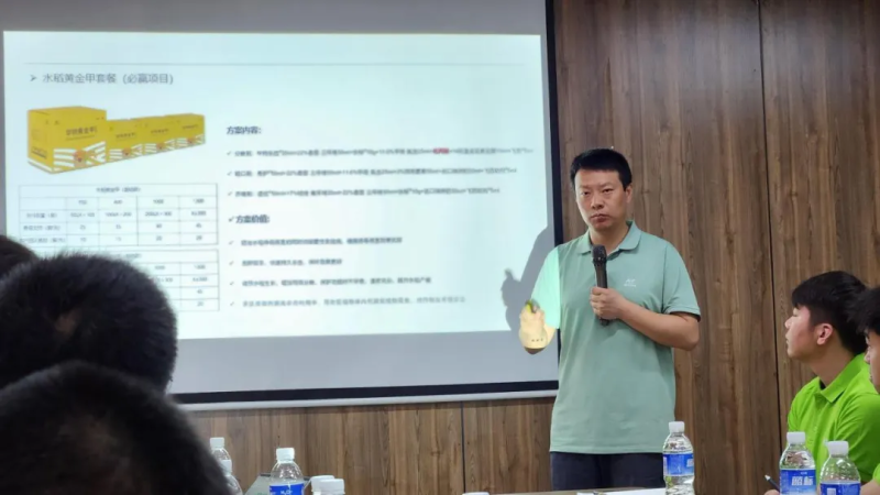 下午,各团队围绕水稻黄金甲套餐、乐胜等重点产品的宣讲开展演讲比赛,人人参与,出谋划策,从精神面貌、企业介绍、产品卖点介绍等多个维度进行比拼,最后评比出优秀成员进行颁奖,帮助大家更好的应对接下来的挑战。