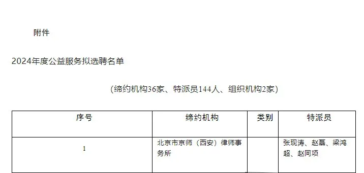 其中,北京市京师(西安)律师事务所成功入选西安市知识产权公益服务缔约机构,我所商标法律事务部主任张现涛律师、赵磊律师、梁鸿超律师、赵同项律师入选西安市知识产权公益特派员。