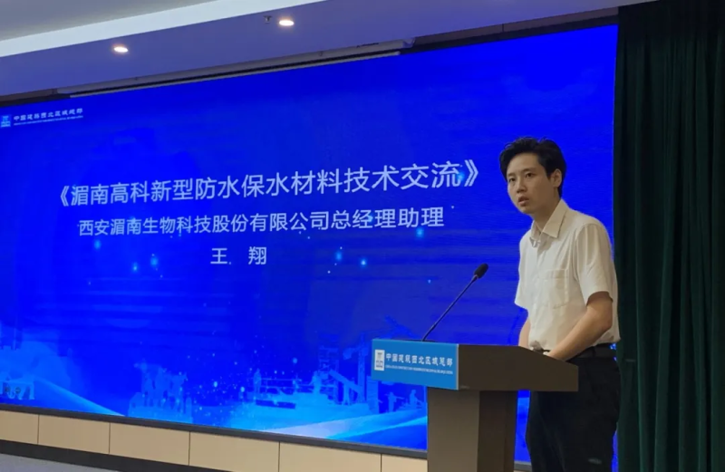 湄南高科总经理助理王翔代表公司出席并作专题汇报。在科技交流环节,王翔展示粉体新材料科技,包括防水沙、防水砂浆、保水剂、保水肥等系列产品。现场实验生动地呈现了这些创新产品的卓越性能,赢得了在场专家的一致好评。