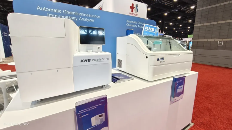与此同时,科华生物带来了其全新推出的V150全自动化学发光免疫分析仪。V150以其高精度、高稳定性和全自动化操作优势,成为免疫分析领域的一项重磅产品。该设备适配多种试剂,灵巧而精准,同时突破临床科室场地局限,充分满足多种应用场景。展会期间,V150吸引了众多客户的目光,充分展示了科华生物在免疫分析领域的技术实力。