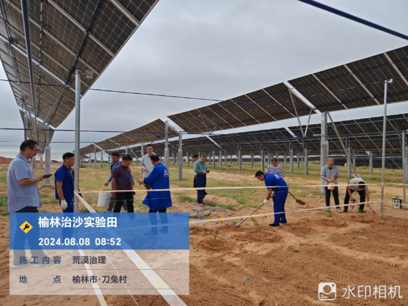 8月8日,西安湄南生物科技股份有限公司(简称“湄南高科”),在其公司创始人卢威博士的亲自率领下,携同副总经理、田青、史永刚、李明,项目经理马志伟等一众精英团队,深入位于陕西省榆林市隆基绿能光伏治沙试验段项目,开展了一场别开生面的实地勘察与治理规划活动。此次行动标志着湄南高科与隆基绿能在光伏治沙领域的深度合作正式拉开序幕,共同开启了一段旨在重塑荒漠生态、推动绿色能源发展的新征程。