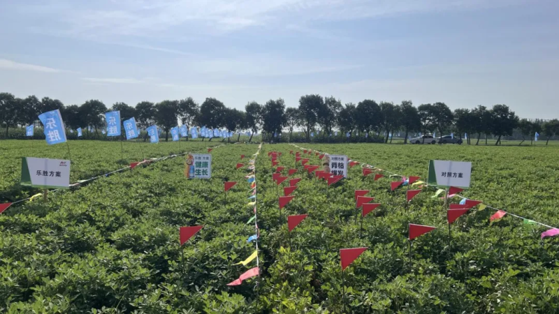 此次观摩会吸引了来自各乡镇的40余位零售商和60余位大农户参与。他们深入田间地头,亲眼见证了乐胜®全程方案在花生种植中的卓越表现。从花生下针到结果,再到青枯病预防效果的查看,每一个环节都给大家留下了深刻的印象。示范地块与对照地块的鲜明对比,成为了本次观摩会的最大亮点。