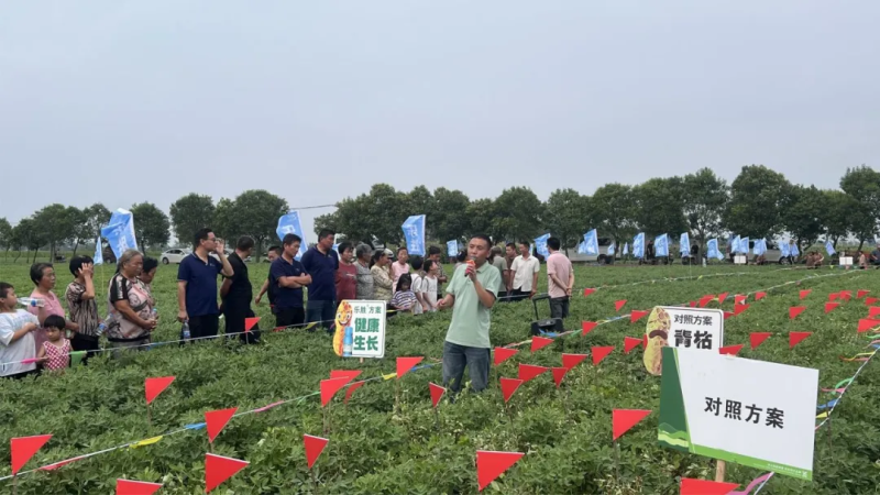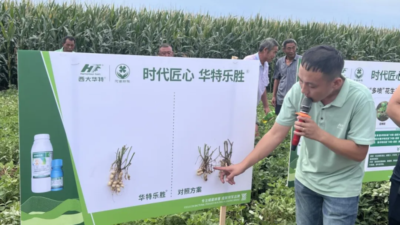 2024年8月9日,新野县溧河镇迎来了一场别开生面的农业盛会——西大华特联合河南新豫及新野双新农资共同举办的大型华特乐胜®预防花生青枯病百人观摩会。此次活动旨在推动新野县农业生产向高质量发展迈进,展现现代农业发展成果,并激发农业生产的新活力与潜力。