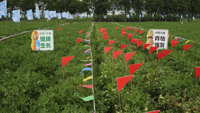 新野县作为花生种植的重要区域,今年遭遇了前所未有的挑战。水淹导致花生开花期受损严重,青枯病随之爆发,给农户带来了巨大的经济损失。然而,正是在这样的逆境中,乐胜®全程方案凭借其出色的促生根下针、保果及预防青枯病的能力,成为了农户们的“救命稻草”。示范地中,花生根系发达,毛细根多而密,下针量密集,果腐病发生较少,叶片浓绿深厚,整体青枯病防效高达90%以上,保果率高达80%以上,夏花生长势甚至堪比春花生,赢得了现场观摩人员的一致好评。