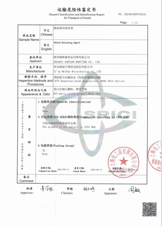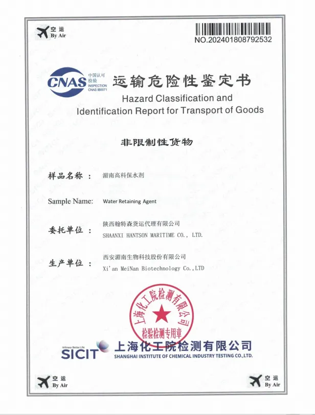 保水剂空运运输鉴定