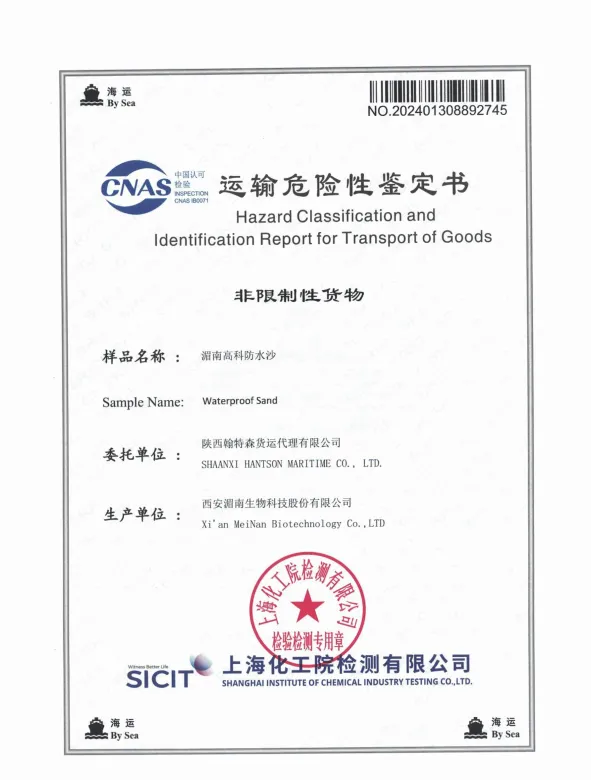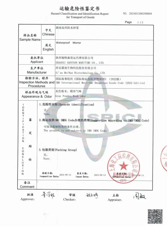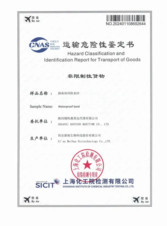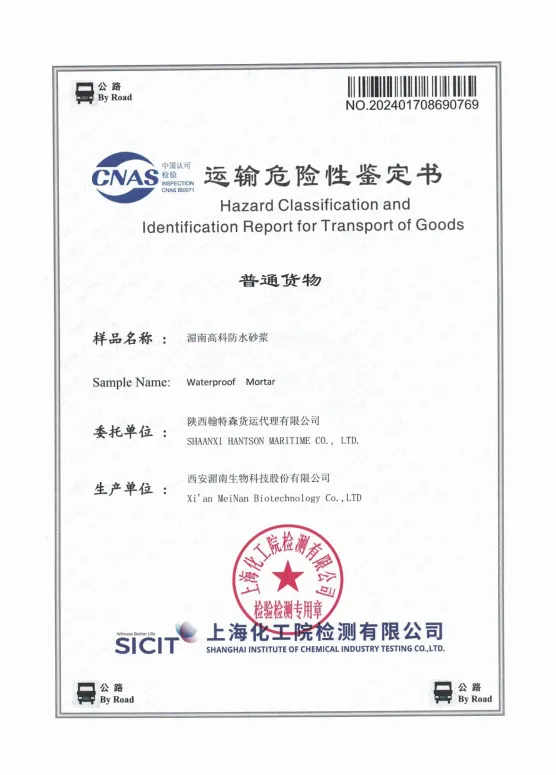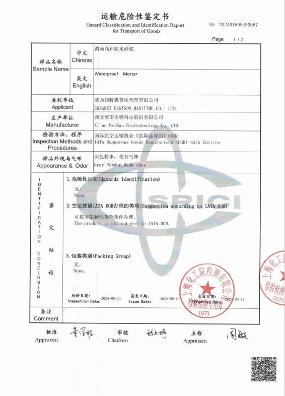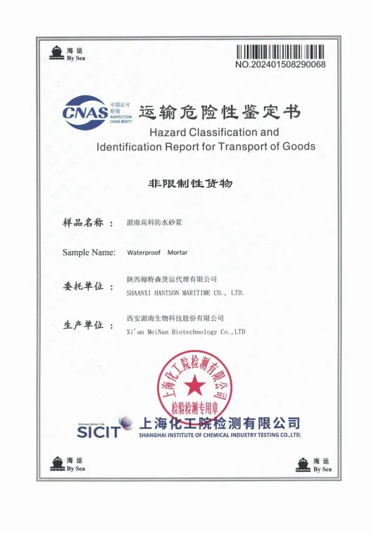 防水砂浆 空运运输鉴定