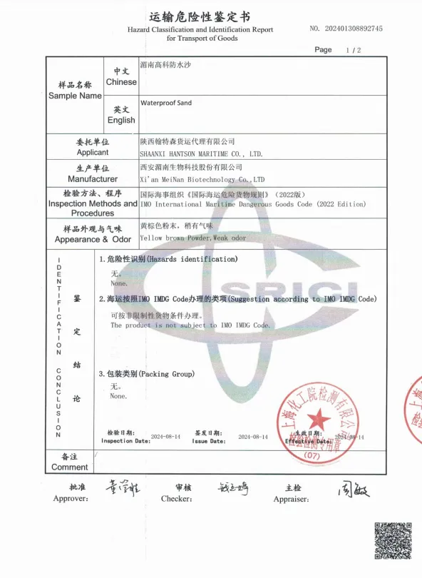 防水砂浆 海运运输鉴定