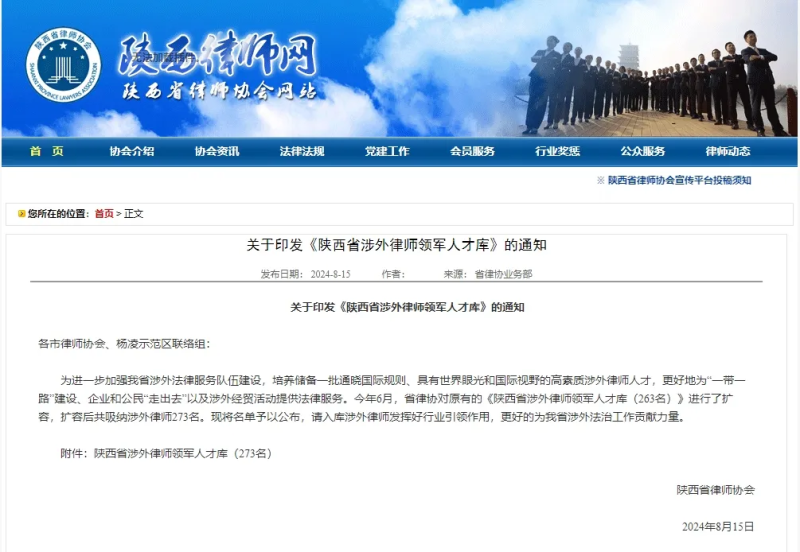 为进一步加强我省涉外法律服务队伍建设,培养储备一批通晓国际规则、具有世界眼光和国际视野的高素质涉外律师人才,更好地为“一带一路”建设、企业和公民“走出去”以及涉外经贸活动提供法律服务。2024年8月15日,陕西省律师协会公布《陕西省涉外律师领军人才库》名单,其中,北京市京师(西安)律师事务所投资合伙人刘瑾律师、林雪峰律师、李梦宇律师成功入选。