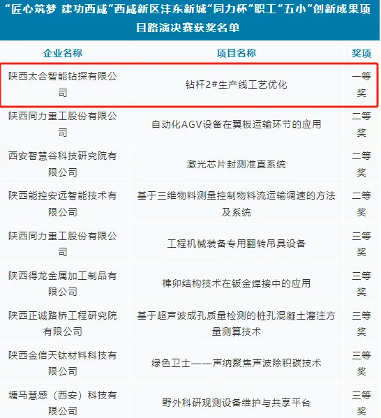陕西太合智能钻探有限公司的钻杆2#生产线工艺优化项目在本次大赛荣获一等奖。