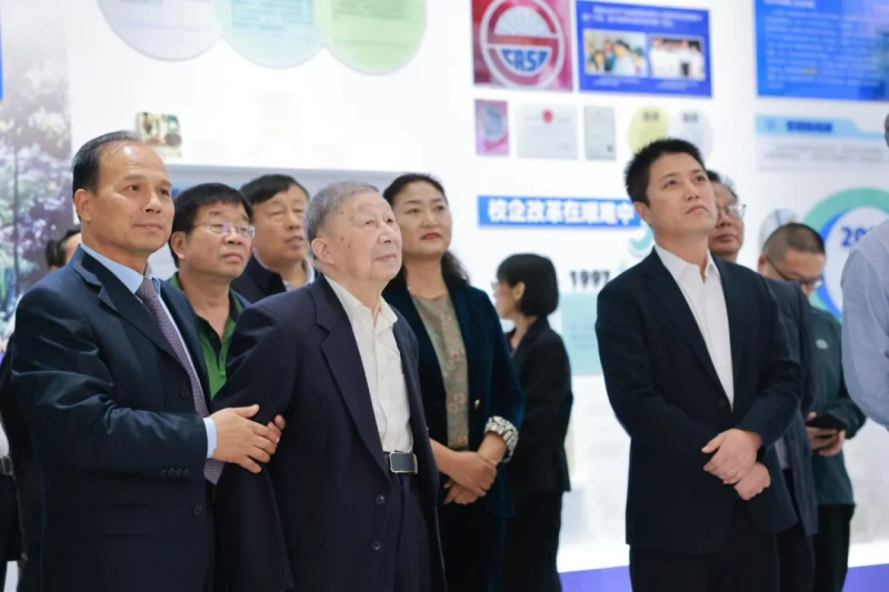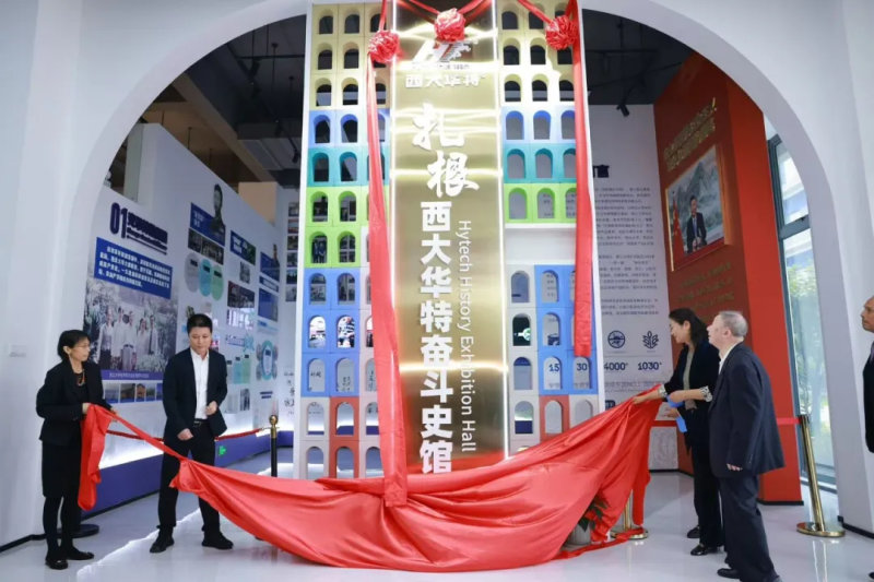 西北大学著名教授、噻霉酮发明人、西大华特奠基者宋迪生,周至县委常委、统战部长陶文智,周至县政协副主席朱璇,陕西省新闻工作者协会企业报分会主席许若青共同为“扎根——西大华特奋斗史馆”揭牌。
