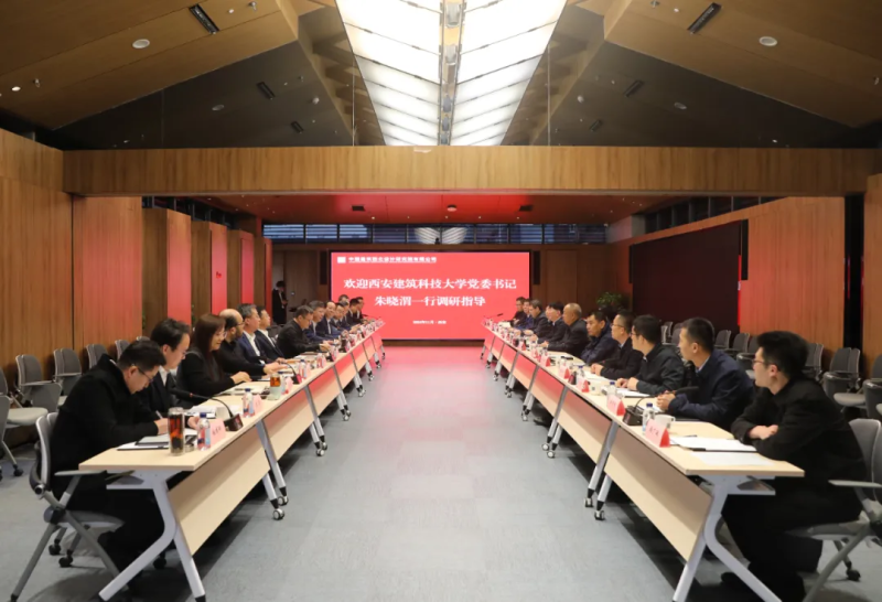 王军对朱晓渭一行到访表示欢迎,感谢西建大长期以来对中建西北院科技创新和人才培养的大力支持,并介绍了西北院的改革发展情况。王军表示,西建大办学历史悠久,学科积淀深厚,是我国著名的土木建筑“老八校”之一,与西北院合作底蕴深厚。双方在人才培养、科研创新、学术交流、师资互聘等领域有着长期深入的合作,西建大培养的众多优秀人才为西北院的高质量发展奠定了坚实基础。当前中建西北院正深入学习贯彻党的二十届三中全会精神,着力推动转型升级、加快建设“百年强院”。希望双方巩固发展以往良好的合作态势,瞄准未来建筑业发展方向,持续深化校企合作,发挥西建大科研优势和中建西北院应用场景优势,在科技研发、成果转化、人才培养、重大项目建设等领域推动更多合作成果和优质项目落地,服务国家发展战略和经济社会发展。