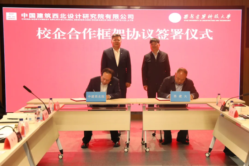 中建西北院相关总部部门负责人;西建大相关部处和学院负责人参加会谈及签约。