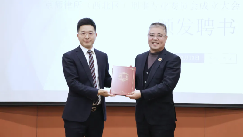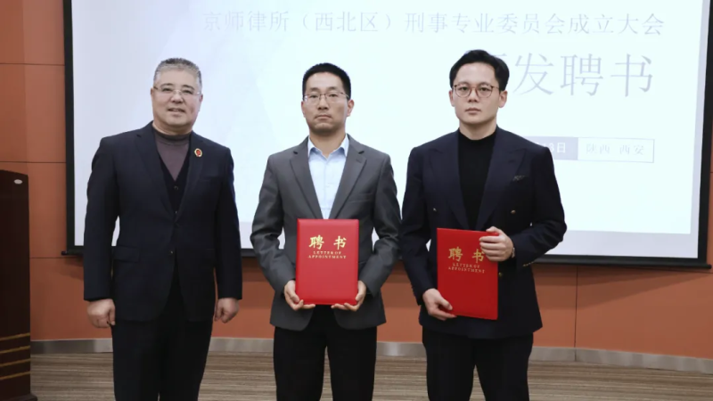 随后,马里主任为京师律所(西北区)刑事专业委员会主任颁发聘书;李豪主任为京师律所(西北区)刑事专业委员会副主任、专家顾问、秘书长、副秘书长颁发聘书;吉雅主任为京师律所(西北区)刑事专业委员会理事颁发聘书。