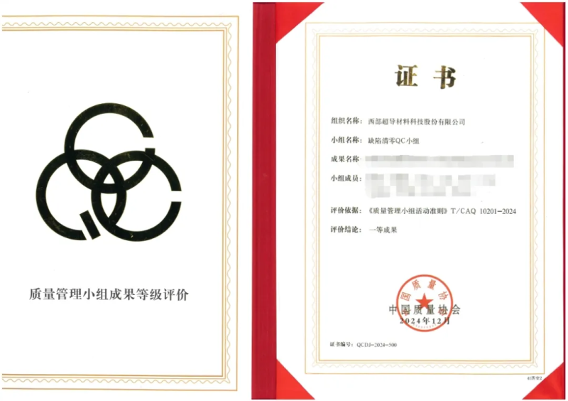 在近日召开的中国质量协会年会上,西部超导公司两项QC成果荣获“全国一等成果”并受到表彰。西部超导秉承“严控过程、精益求精、诚信为本、顾客满意”的质量方针,“答案永远在现场”的行为方针,以及“博士善用笔也会用工具,技术工人善用工具也会用笔”的人才培养理念,长期持续推动质量改进和改善活动的高质量开展。