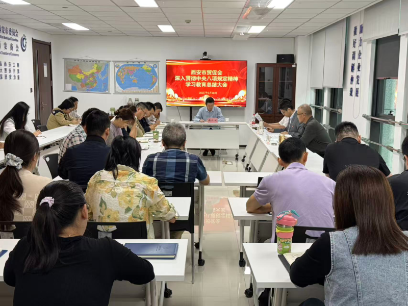 9月18日上午,西安市贸促会组织召开了深入贯彻中央八项规定精神学习教育总结大会,传达学习了习近平总书记关于深入贯彻中央八项规定精神学习教育的重要指示和蔡奇、李希同志在中央党的建设工作领导小组第十七次会议上的讲话精神等,全面总结了我会深入贯彻中央八项规定精神学习教育开展情况,并对常态化推进作风建设,进一步持续巩固拓展学习教育成果作出重要安排部署。