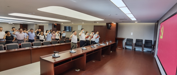 随后,全体党员面向党旗庄重严肃重温入党誓词,持续增强党员的宗旨意识和奉献意识,自觉遵守党的章程,终身践行入党誓词,更好地发挥先锋模范作用。
