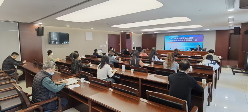 为深入学习贯彻党的二十大精神,把党员干部思想和行动统一到党的二十大精神上来,把力量凝聚到党的二十大确定的各项任务上来,3月14日,市贸促会组织学习贯彻党的二十大精神专题宣讲辅导会。党组书记、会长冉红斌以《努力建设好国家中心城市,为中国式现代化贡献西安力量》为题开展专题辅导,市贸促会全体党员干部参加。