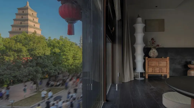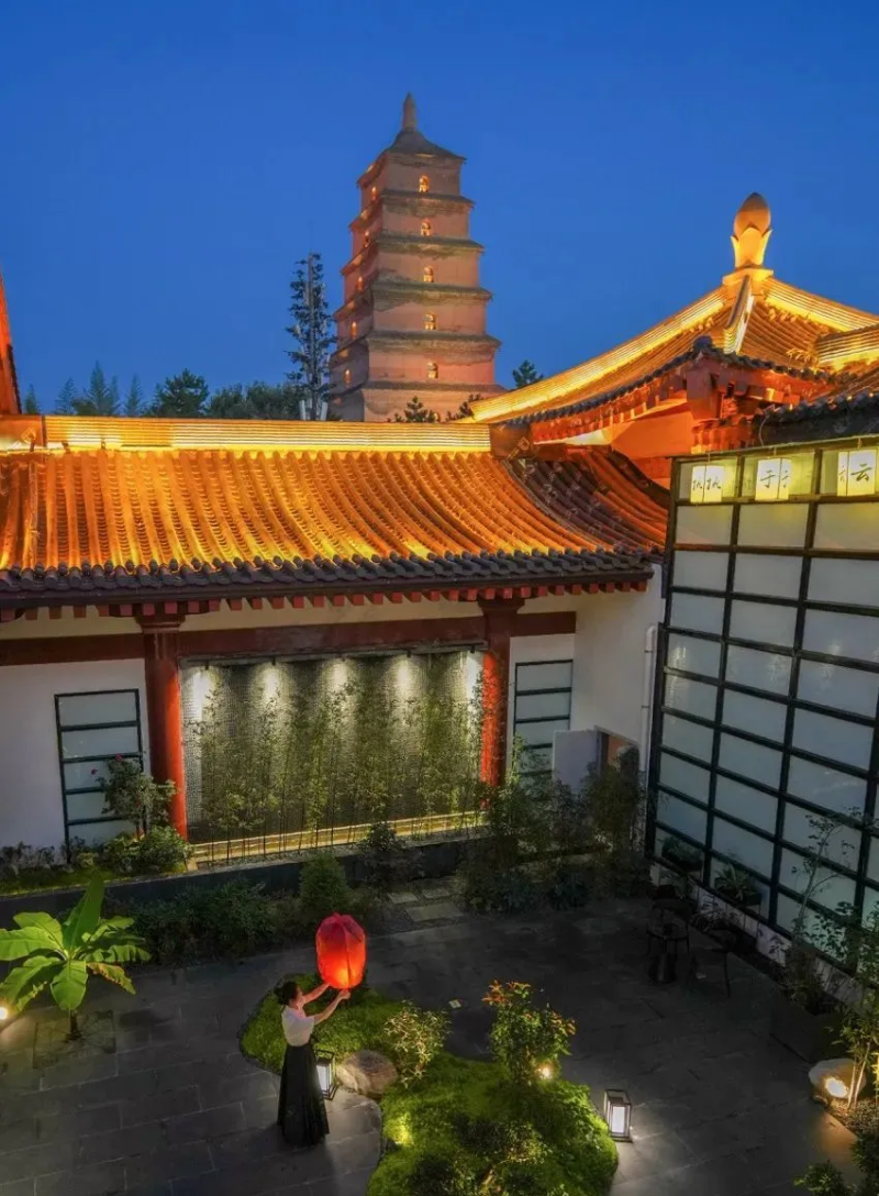 到抬头见大雁塔、绿植环绕的雅致庭院