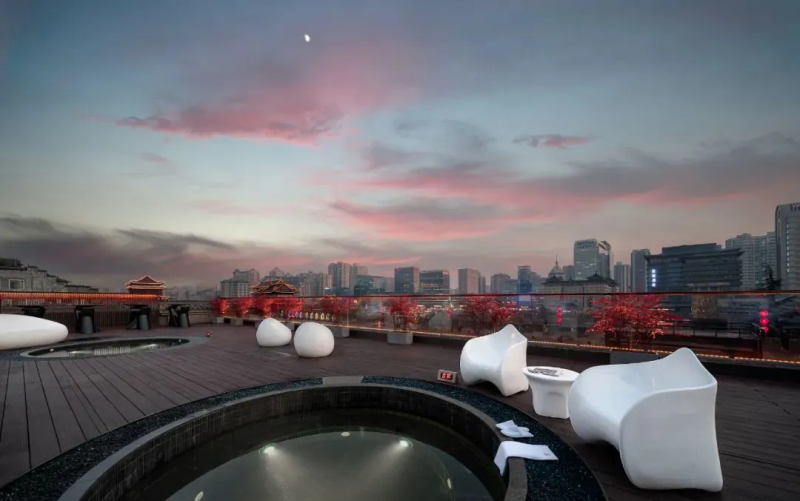 还有超大观景露台、汤池、茶室、咖啡厅等