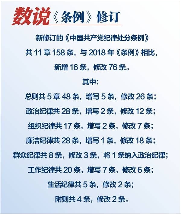 总结从严管党治党经验、实现制度与时俱进的实践要求。党的十八大以来,我们党持之以恒加强纪律建设,聚焦“关键少数”抓纪律,健全党员、干部日常行为管理规范,推进领导干部能上能下工作,整治形式主义为基层减负,深入治理群众身边不正之风和腐败问题,纪律建设取得重要成果和宝贵经验。此次修订《条例》,本着于法周延、于事有效的原则,把全面从严治党理论和实践成果上升为制度规范、转化为纪律要求,有利于扎牢制度笼子,更好发挥纪律建设标本兼治的利器作用,推动全面从严治党取得更大战略成果。