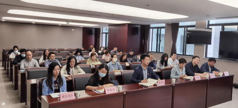 市贸促会领导班子成员及全体干部参加会议。