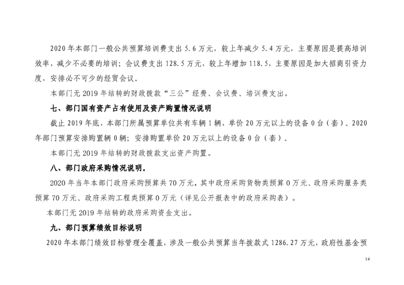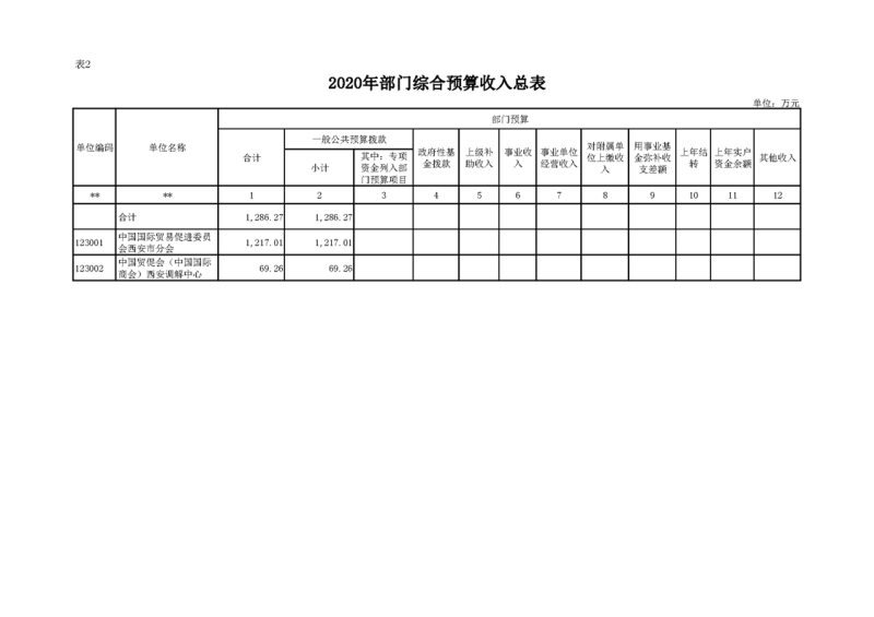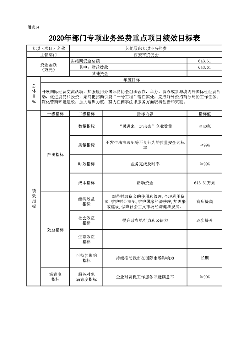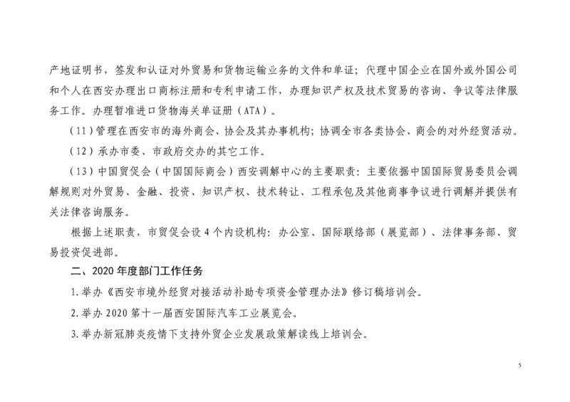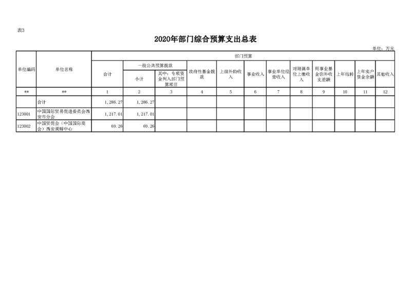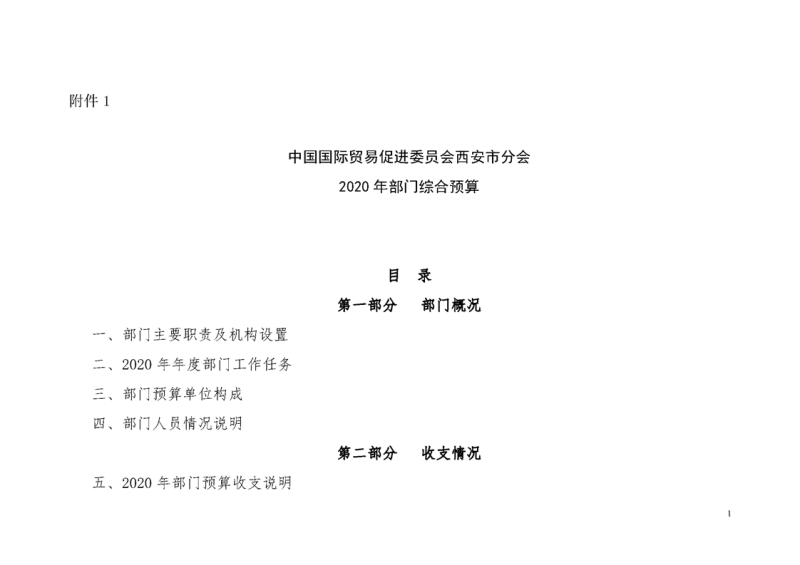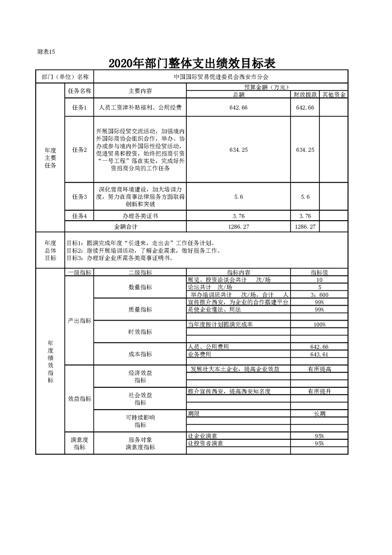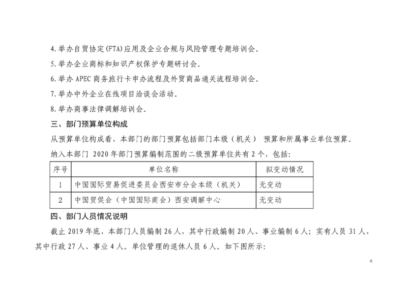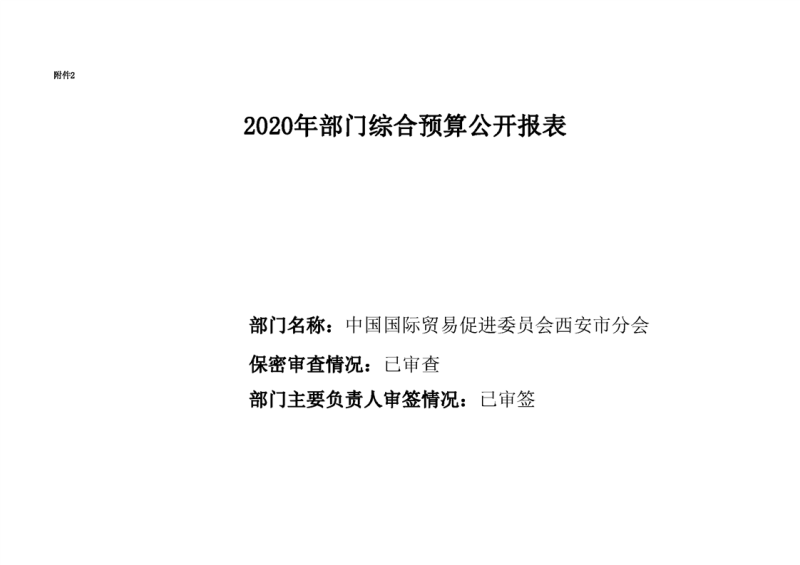 中国国际贸易促进委员会西安市分会2020年部门综合预算