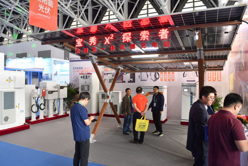 2023欧亚经济论坛经贸合作博览会暨中国(陕西)进出口商品展上展出的光储充一体车棚充电站