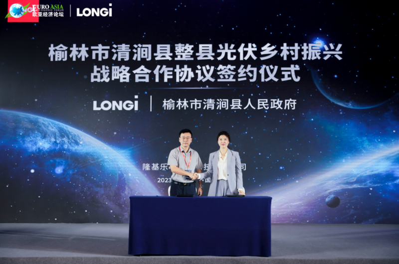 此外,记者了解到,在2023丝路绿色能源国际合作大会上,隆基绿能与榆林市清涧县签订“乡村振兴整县推进光伏项目战略合作协议”,该项目目前已经在推进实施中,这一项目将开创全省乡村振兴建设新模式。
