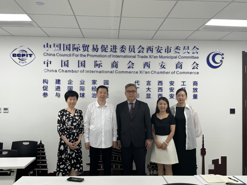 冉会长对梁先生一行的到访首先表示了热烈欢迎,他详细介绍了中国贸促会成立的背景和在不同历史时期为中国经济发展做出的贡献。他表示,今年6月份,西安市贸促会圆满完成中国贸促会贸法通平台值守任务,为境内外企业开展跨境贸易投资提供“7x24”小时公益法律服务,累计解答企业咨询问题65件,涉及国际贸易、国际合规、争端解决、跨境投资、知识产权等方面。同时还详细介绍了西安的科技优势、区位优势和西安空港和铁路运输的交通枢纽优势。