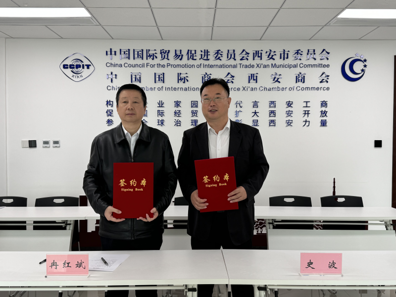 最后,冉红斌会长与史波会长分别代表西安市贸促会、大同市贸促会共同签署了《合作框架协议》。双方一致表示,要借助“中国国际商会中心城市国际商会联盟”的平台,依托各自资源优势加强战略合作,相互开放共享资源,叠加放大两地优势,推动两市贸促工作高质量发展。