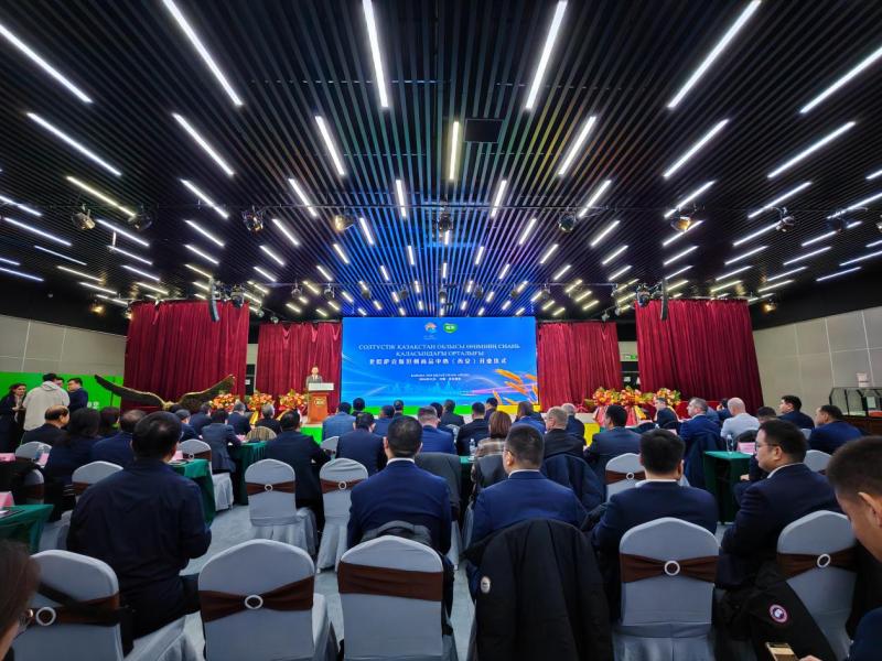11月19日上午,哈萨克斯坦“北哈萨克斯坦州商品中心(西安)”揭牌仪式在西安爱菊集团隆重举行,北哈州州长努尔穆罕别托夫,陕西省友协专职副会长曹辉,哈萨克斯坦驻西安总领事佐齐汗,陕西省农业农村厅副厅长何建林、陕西省商务厅副厅长黄绪林、陕西省粮食和物资储备局总工程师王志军、中国国际贸易促进委员会西安市分会会长冉红斌、西安市发展和改革委员会副主任张海玲、西安市商务局副局长麻晓勤、西安市农业农村局副局长赵向军、西安浐灞国际港管委会副主任许曼,西安爱菊粮油工业集团董事长贾合义,陕西省外经贸会展集团董事长李英楠、党委书记严锟,陕西省大秦电能集团董事长赵晨,陕西省农业产业化龙头企业协会秘书长段云龙、陕西省粮食行业协会会长屈善训、西安市粮食行业协会常务副会长郭群利等出席揭牌仪式并见证签约仪式。中哈20多家企业参加活动。北哈州10多种商品现场展示。
