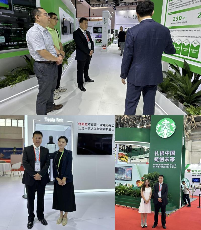 第三届链博会上,夏鹏副会长先后走访了陕西汽车智链展区、特斯拉、星巴克及施耐德电气等企业展区。