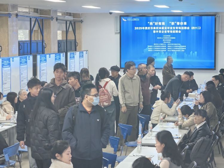 西安市贸促会联合西安市人社局聚焦外贸企业的用工需求,积极提供“一站式”就业服务,于2025年10月23日,在西安市人才市场举办“‘岗’好有我、‘职’等你来”—2025西安市离校未就业毕业生专场招聘会(四十二)暨外贸企业专场招聘会。本次招聘会由西安市贸促会和西安市人社局主办,西安市人才中心携手新城区、碑林区、莲湖区、雁塔区、灞桥区人社局及浐灞国际港组织人事部共同承办。