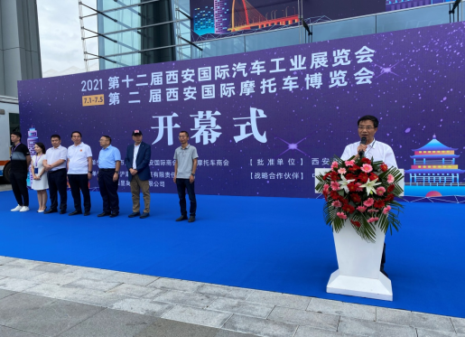 2021第十二届西安国际汽车工业展览会暨2021第二届西安国际摩托车博览会于2021年7月1日在西安国际会展中心精彩开幕,该展会由西安市贸促会主办,陕西显高传媒有限公司承办。旨在释放西安车市消费潜力、恢复车市活力,拉动西安消费快速增长,助力西安汽车产业集群发展,是一年一度西北地区规模大、规格高、影响力广泛的国际汽车工业展览会之一。本届汽车展使用西安国际会展中心1、2、3、4、6号展馆及室外展场,总展出面积达9.2万平方米,为历年来规模最大。中国摩托车商会常务副会长李彬、陕西省会展协会主席张锁良、我会龙晓华会长出席开幕式并致辞。国际联络部冯武刚部长主持本届车展开幕式。