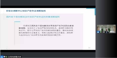 2021年11月,国内首个面向解决涉外知识产权争议的商事调解规则正式发布,其对于完善知识产权纠纷解决机制建设、推动商事调解发展均具有重要意义。为了更好地提高西安涉外企业应用商事调解途径解决知识产权创造者与使用者之间商业利益争端问题,满足当前社会对知识产权纠纷解决多元化的需求,4月26日上午,西安市贸促会举办了知识产权争议商事调解规则解读与应用线上培训会。会议邀请中国贸促会调解中心知识产权专业委员会主席马浩先生和中国贸促会调解中心副秘书长王芳女士分别就知识产权争议调解规则和流程、注意事项进行了精彩阐述,对下一步开展知识产权保护和服务工作具有很强的指导意义。我市知识产权中心、涉外企业、商事调解机构70余人参加会议。