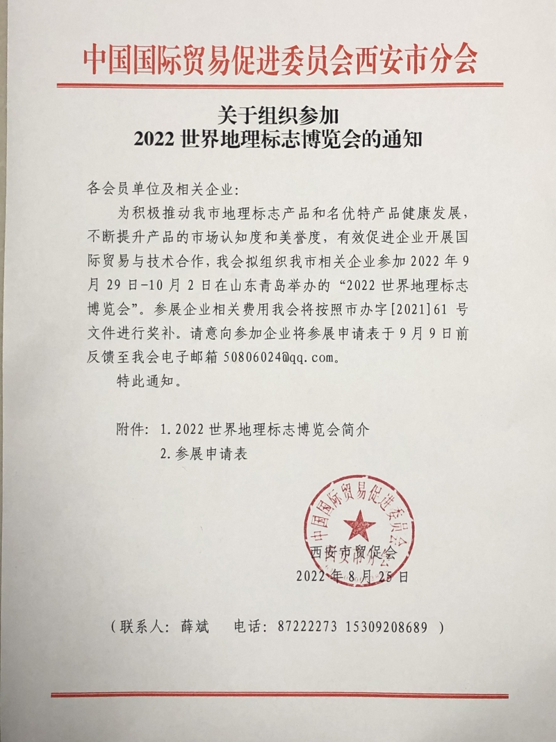 关于组织参加2022世界地理标志博览会的通知