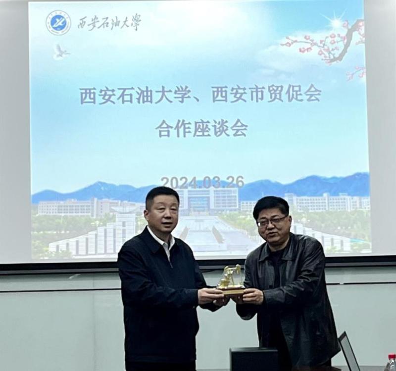 冉红斌会长详细介绍了西安市贸促会的发展历史、主要职能和工作成果。他表示,西安市贸促会是党和政府联系经贸界人士、企业、团体的重要纽带,是境内外工商界开展经贸交流合作的重要桥梁。作为促进西安市贸易发展和国际交流的重要机构,已同世界上100多个国家和地区的工商企业界建立了广泛的经贸联系,与80多个对口组织签订了合作协议,在推动西安地区经济国际化、加强国际经贸合作等方面取得了显著成效。并指出,西安市贸促会将充分与西安石油大学开展多方合作,助力学校人才培养和人才交流。