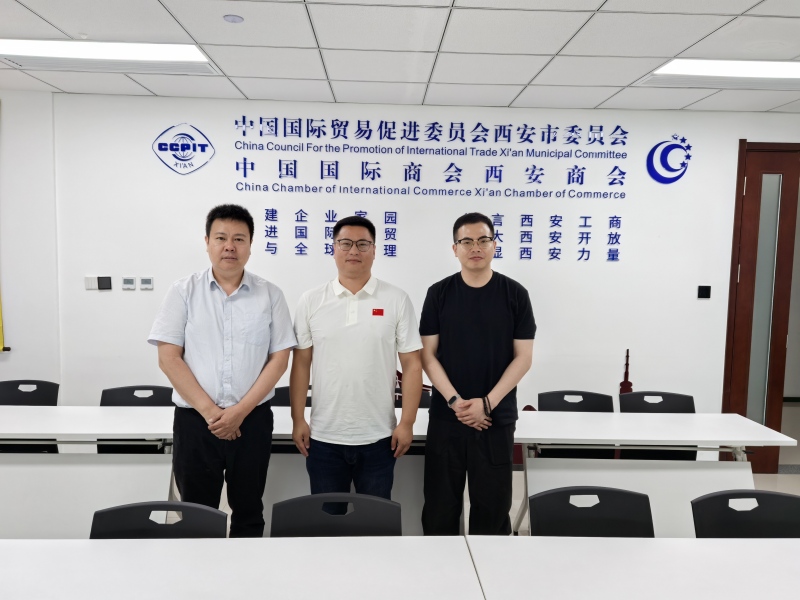 2025年7月29日,俄罗斯联邦总商会首席代表冉泽华一行拜访我会,并与西安市贸促会副会长夏鹏座谈交流。