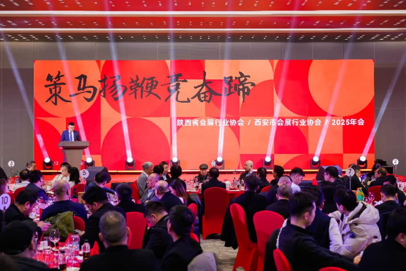 2025年12月24日,由陕西省会展行业协会、西安市会展行业协会联合举办的2025年会在西安国际会展中心会议楼召开。年会以“资源共享、经验互鉴、创新赋能、共谋发展”为主题,开展了年度工作报告、评先树优、企业交流等活动,来自行政主管部门、行业组织机构、会展服务企业代表及新闻媒体近200名嘉宾代表出席。西安市贸促会党组书记、会长冉红斌受邀参会并致辞。