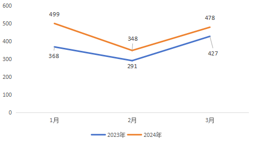 2024年第一季度为44家企业办理国际商事证明书202份,去年同期受理218份,减少7.33% 。