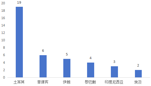 代办证书量最大的是土耳其使馆,占比37.25%;菲律宾排在第二,占比为11.76%。