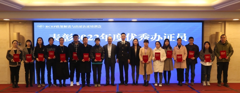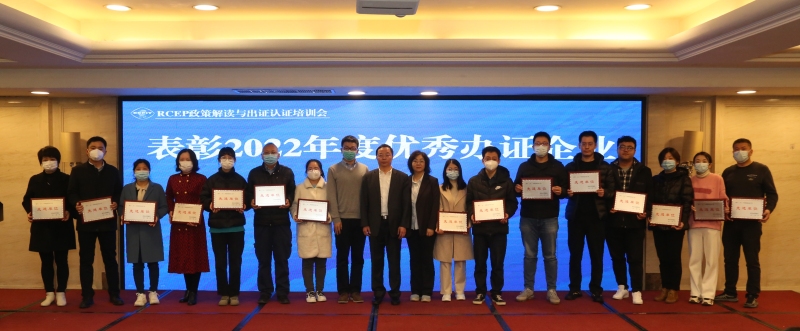 本次培训会还对2022年度出证认证工作中的优秀企业和优秀个人进行了表彰,分别授予西安对外贸易经济开发公司等15家优秀办证企业和15名优秀办证员奖牌和荣誉证书。