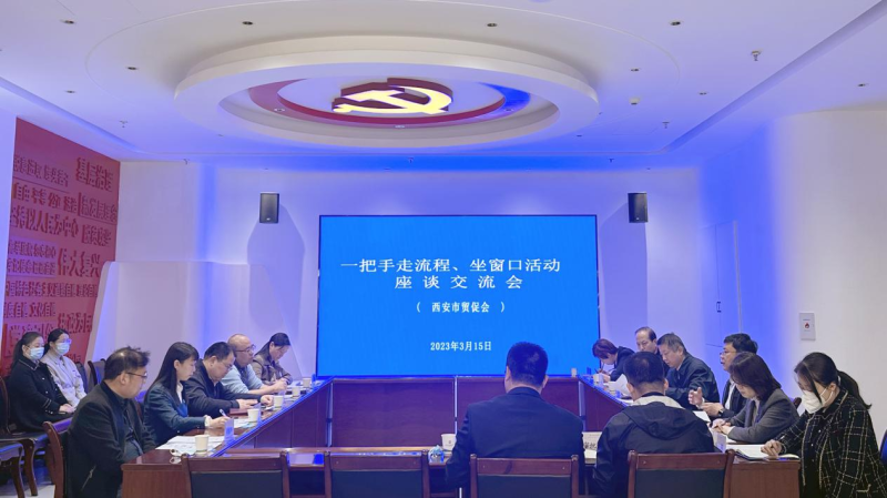 在座谈中,西安市行政审批局陈晓军局长首先介绍了政务服务中的建设及相关业务推进情况,并对西安市贸促会进驻政务服务中心的各方面工作给予了高度肯定。西安市贸促会介绍了进驻政务服务中心的服务事项在过去一年来的运行和提升改进情况。