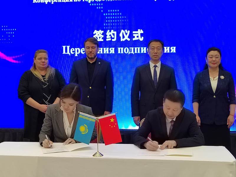 西安市贸促会冉红斌会长与哈萨克斯坦阿塔梅肯全国企业家协会(国家级)总经理阿依努尔·巴斯帕科娃代表双方机构签订了友好合作备忘录,约定在会议会展、贸易信息、组团互访等方面加强合作;两地企业就农业、能源、物流、文旅、商贸等领域进行了广泛深入的对接洽谈,寻求合作意向。