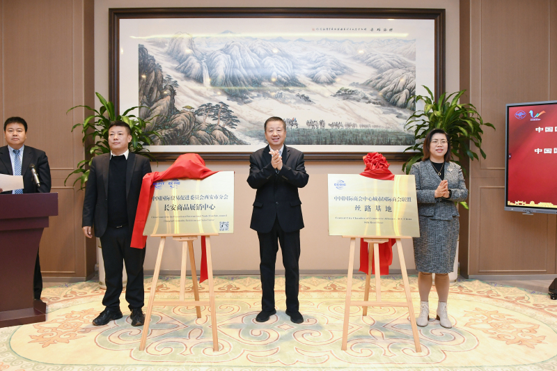 12月10日,“中国国际贸易促进委员会西安市分会长安商品展销中心”及“中国国际商会中心城市国际商会联盟丝路基地” 揭牌仪式,在中亚公园丝路会客厅举行。长安商品展销中心的成立,为西安地区企业提供了展览展示、宣传推介和带货销售的新平台;联盟丝路基地的设立,不仅壮大了中心城市国际商会联盟的阵地,更为丝路会客厅深度赋能,提供更多机遇。